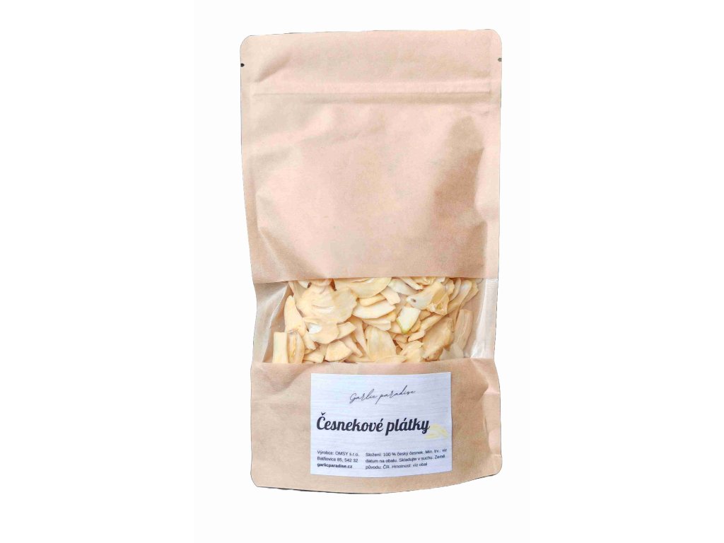 Naše česnekové plátky jsou vyrobené z kvalitního českého česneku, který si zachovává svou typickou výraznou chuť a aroma. Díky šetrnému zpracování zůstává česnek přirozeně voňavý a chutný – ideální pro každodenní vaření.