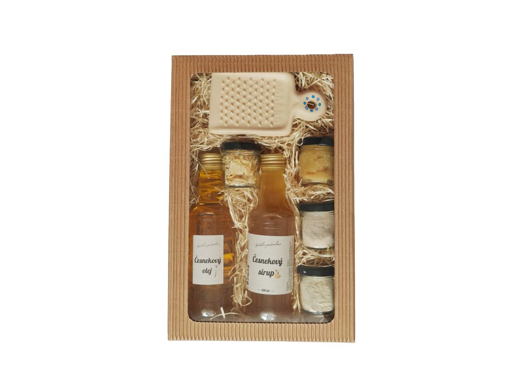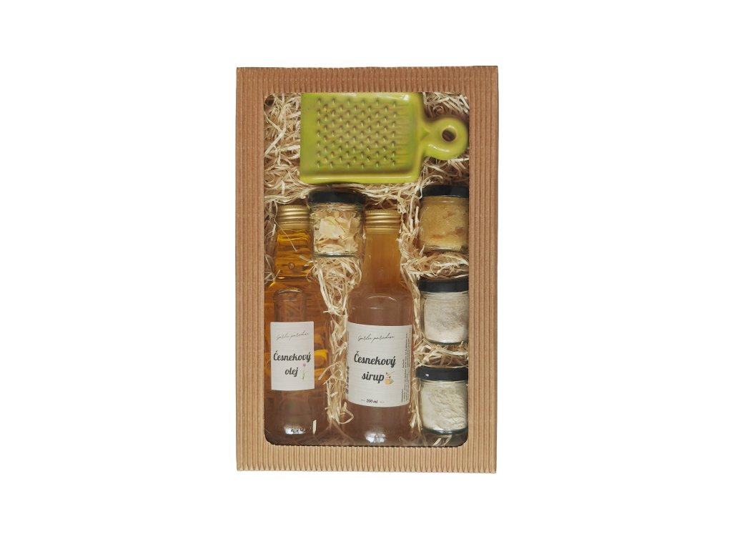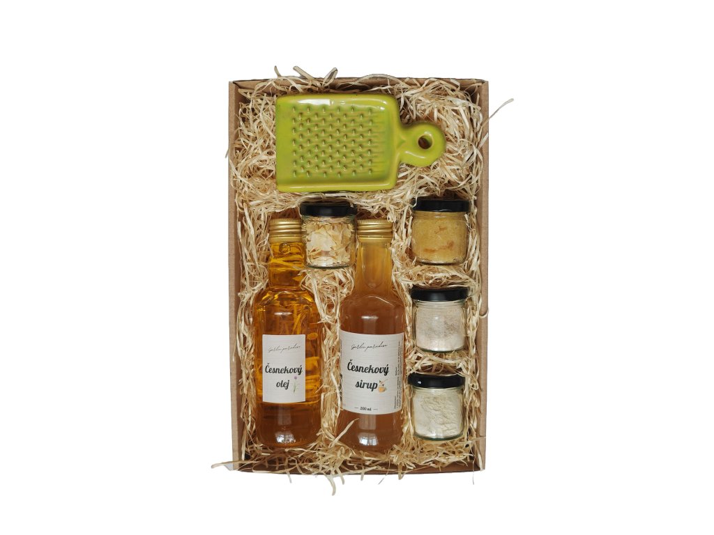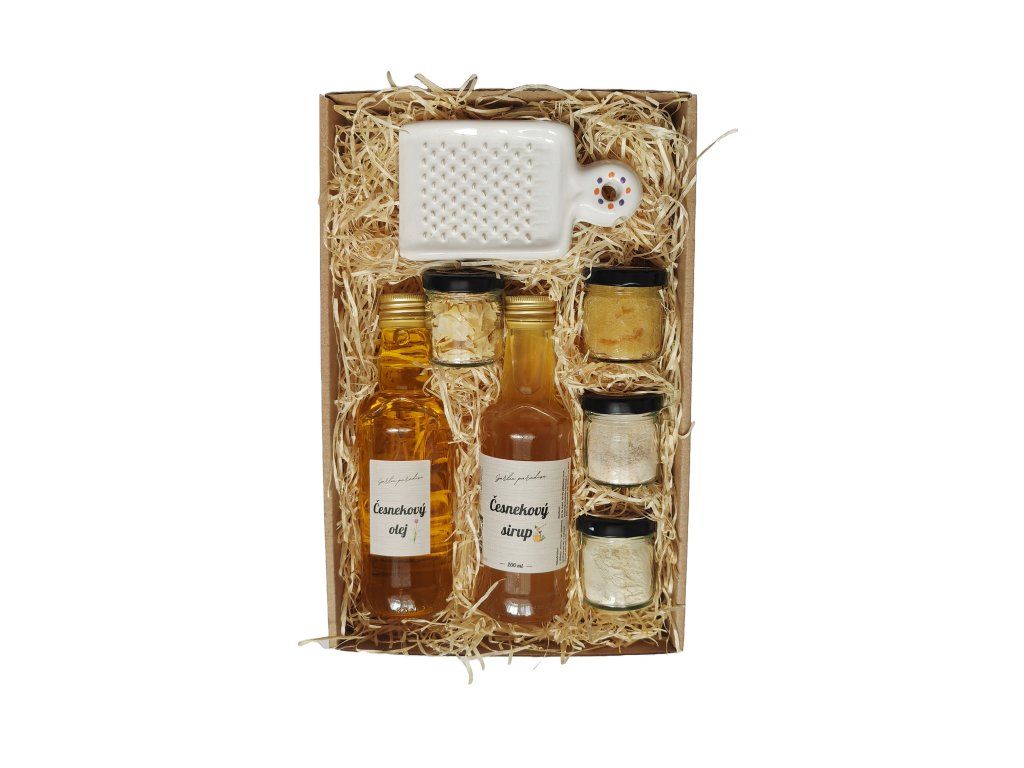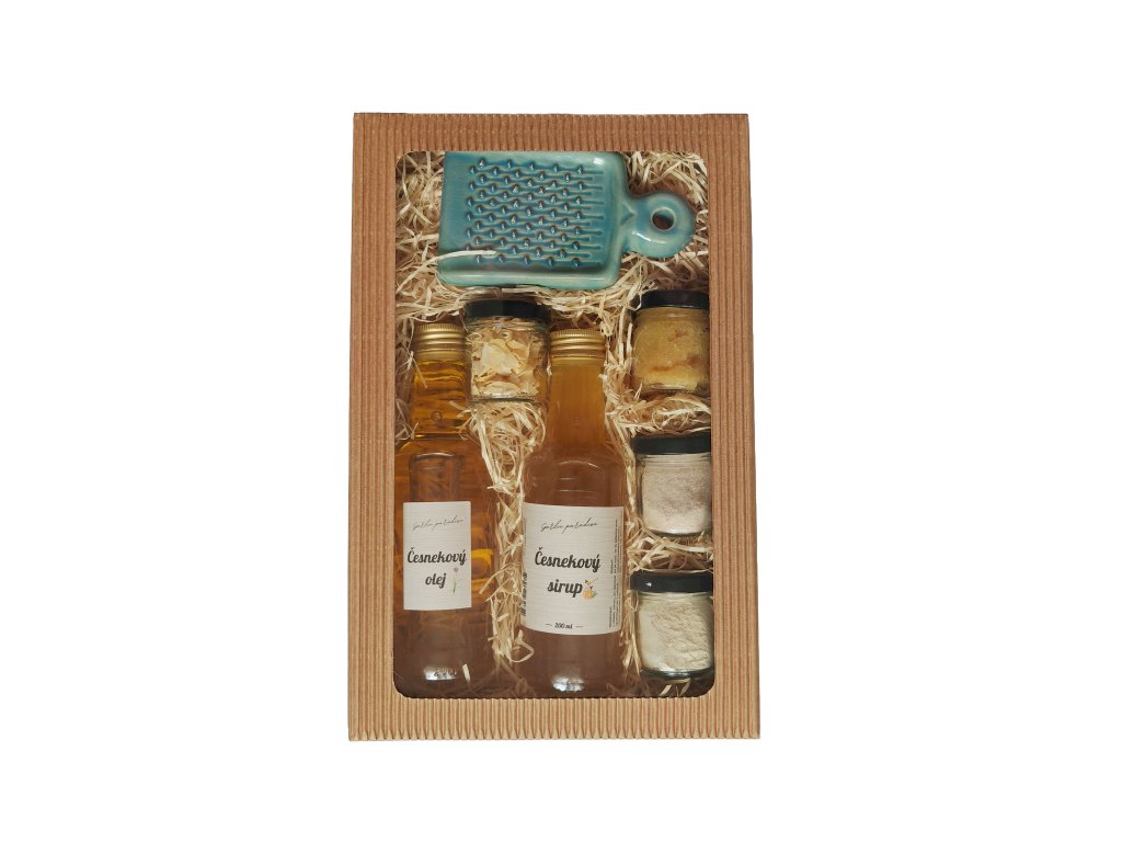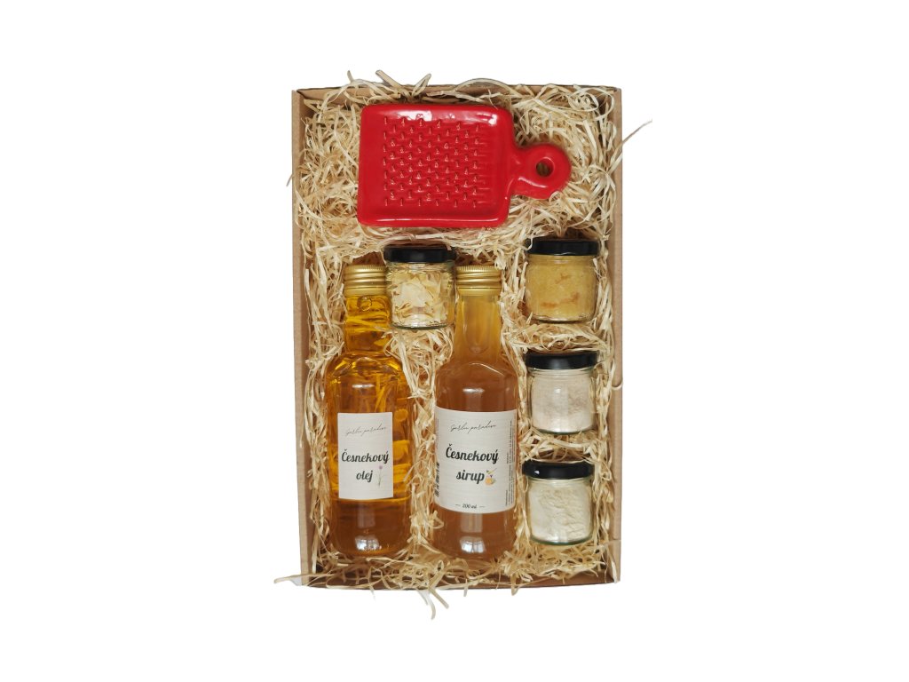 Česnekový dárkový balíček od značky Garlic Paradise nabízí šest poctivých českých produktů a ručně vyráběné keramické strouhátko, které potěší každého milovníka česneku. Všechny produkty jsou vyráběny ručně v České republice z kvalitního českého česneku – bez umělých přísad, s důrazem na chuť, vůni a tradici. Tento balíček představuje ideální ochutnávku česnekových specialit i originální dárek pro každou příležitost.