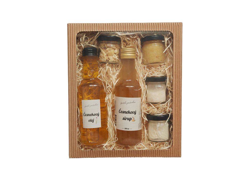 Balíček „Chuť českého česneku“ je ideálním způsobem, jak poznat pravou chuť česneku v jeho nejrůznějších podobách. Všechny produkty vznikají v České republice z česneku vypěstovaného na českých polích a zpracovaného s maximální péčí. Tento balíček potěší každého, kdo si váží poctivých surovin a hledá kvalitní dárek pro přátele, rodinu nebo obchodní partnery.