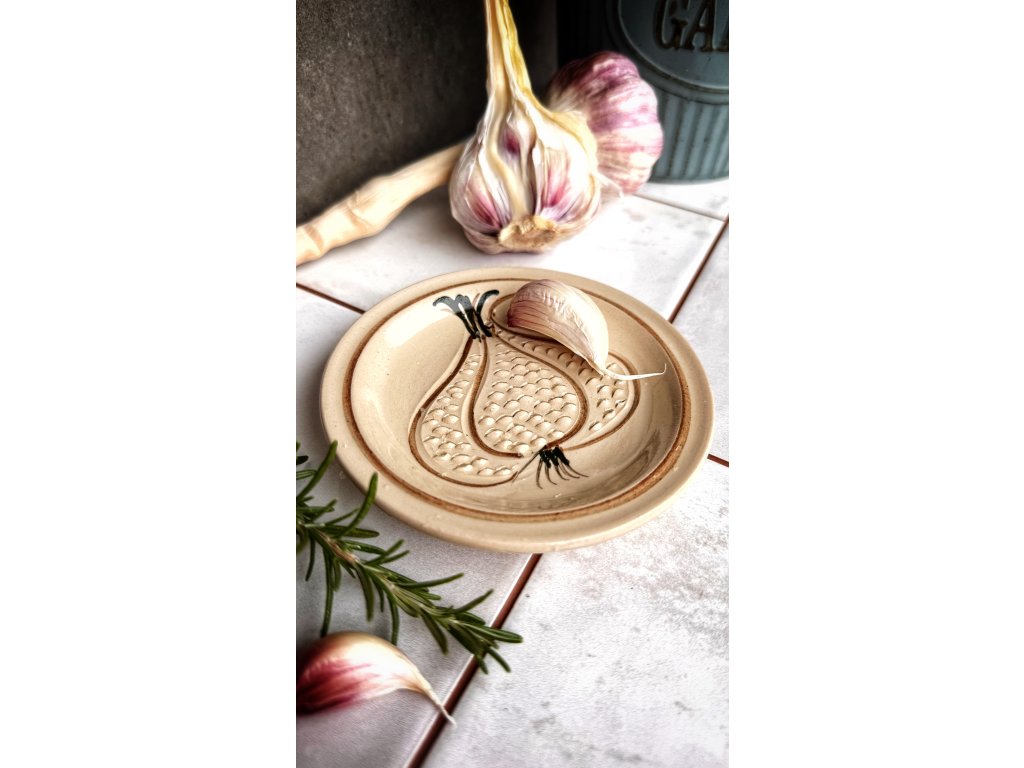 Jsem keramické struhátko na česnek a v průměru měřím 11 cm. Usnadním vám práci se strouháním česneku i zázvoru, a čisté budu raz dva!