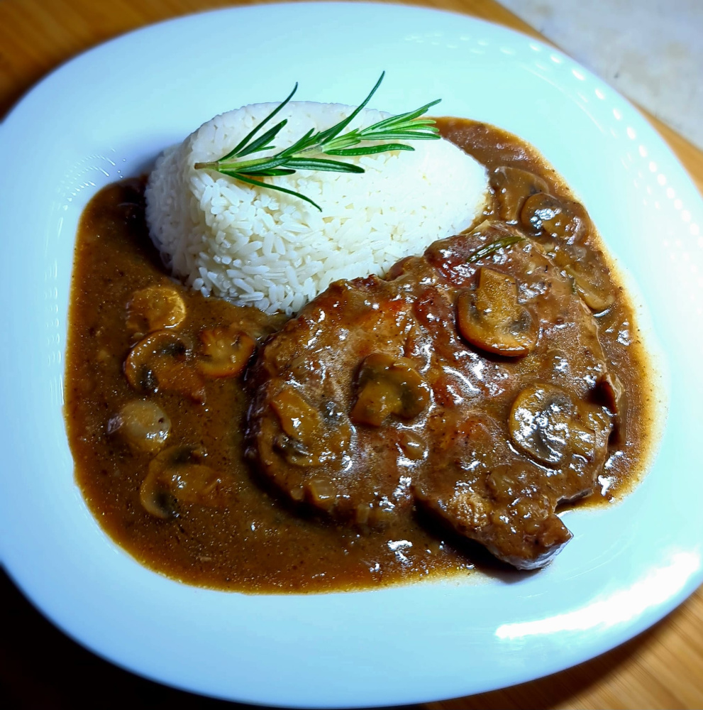 Vepřové plátky na žampionech s rýží