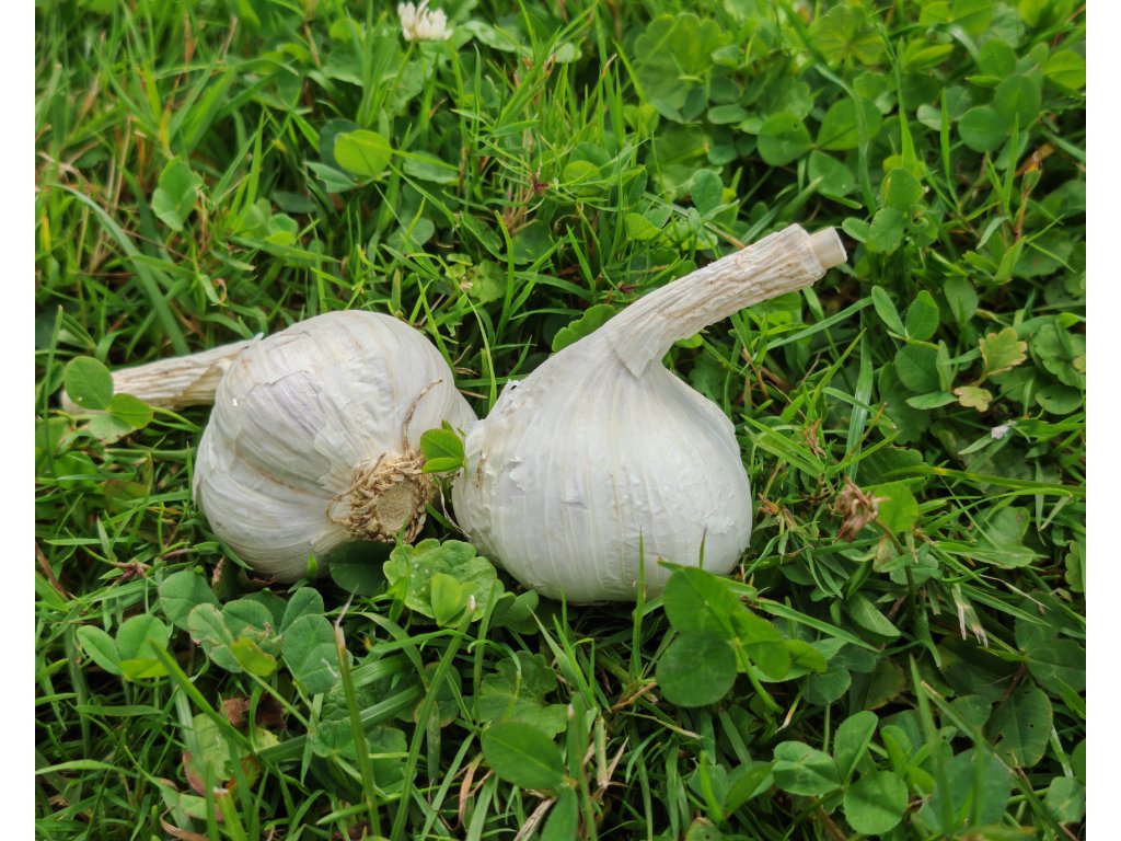 Český česnek z moravské farmy z okolí Kyjova. Odrůda Rusák. Baleno v síťce.
